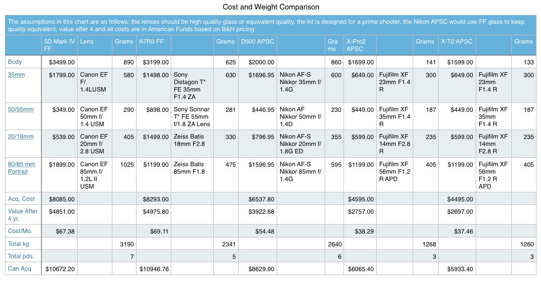If you are going to travel given the extremely high quality of the Fuji lenses it might make some sense to look at this kit, after all, the weight and price are half that of a full frame camera! A little googling will come up with a plethora of full frame pros that have gone Fuji especially for field work.