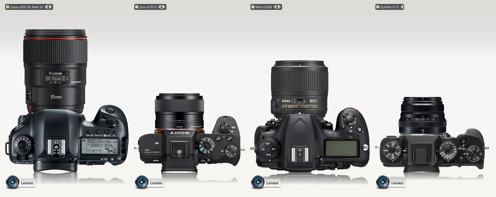 Here all three cameras in the same order as above with a 35mm lens attached.